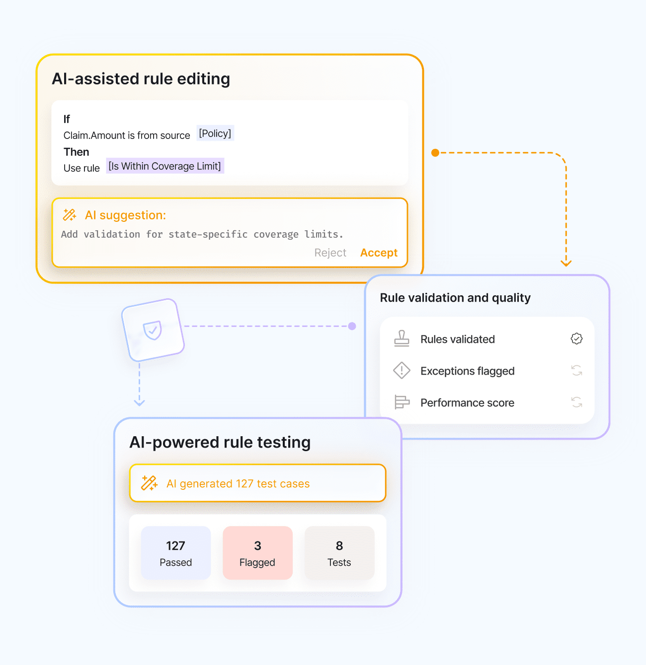 Teams model impact, catch errors early, and deploy with confidence that rules behave as intended in production.