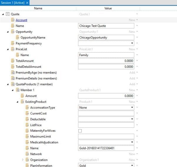 I’m now ready to do some exploration! I select the top-most entity in the hierarchy I want to examine (in this case, it’s Quote) and in the CRM tab I select Test. I’ll be asked to select an environment and log in, after which I’ll be asked to select a record from a particular View to use in the test: